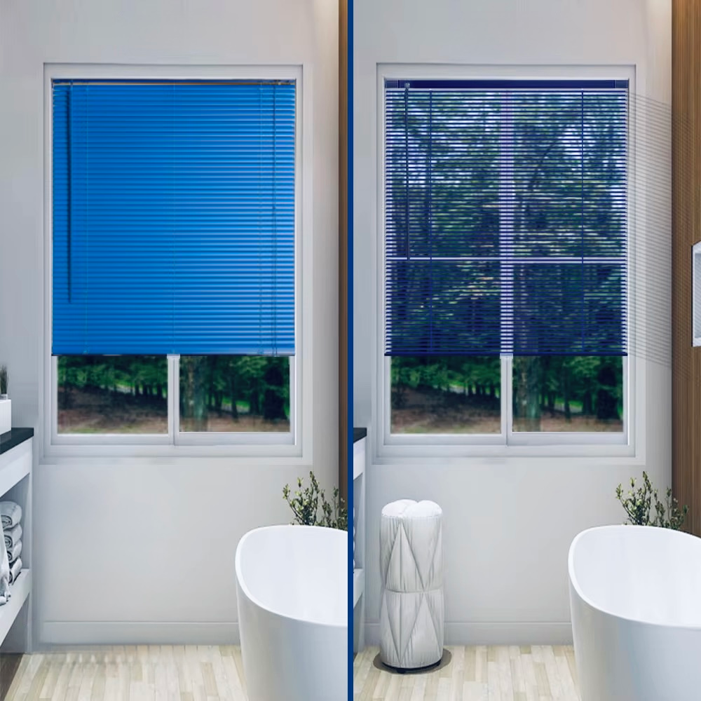 Persiana veneciana de vinilo con láminas de 25 mm, flexibles y resistentes. Su diseño práctico y versátil la hace ideal para cocinas, baños, espacios juveniles y decoraciones informales.